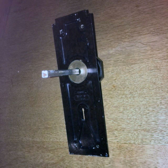 Options are: Walnut or Black Bakelite, pair of door knobs, pair of lever handles or one handle and one knob. (The lever handle would be used on the outside of the room to give knuckle clearance, and the knob used on the inside of the room). In addition, we at Broughtons can also offer versions for bathrooms & toilets with a turn and an emergency release in various metal finishes to complement bathroom taps etc.